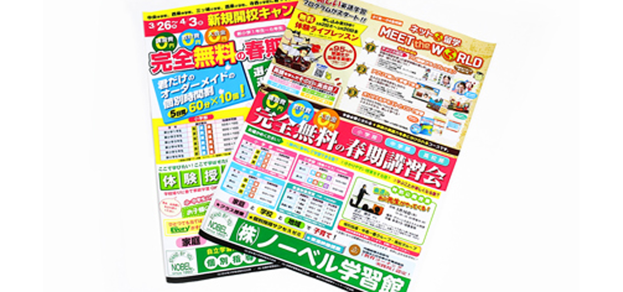 イベントや公演、セミナーの開催告知や学習塾の生徒募集など、ポスターの用途は様々ですが、サイズや紙質を工夫することで、オリジナリティ溢れる、ひと味違うポスターが作成できます。 特殊な加工やインクで印刷することで、屋内だけでなく屋外でも使用できますので、お気軽にご相談ください。