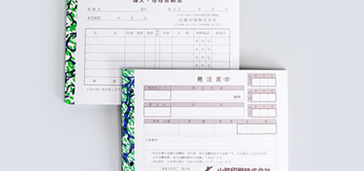 請求書、納品書、帳票類など、毎日使用するものだからこそ、使いやすく質の良いものをご提供させて頂きます。 連続帳票や単票、複写式・減感・ナンバリングやバーコードなど、多種多様なお客様のニーズにお応えすることができます。その他、下敷き付き製本や穴あけ、ミシン・マーブル貼りなどの加工も可能ですので、お気軽にご相談ください。